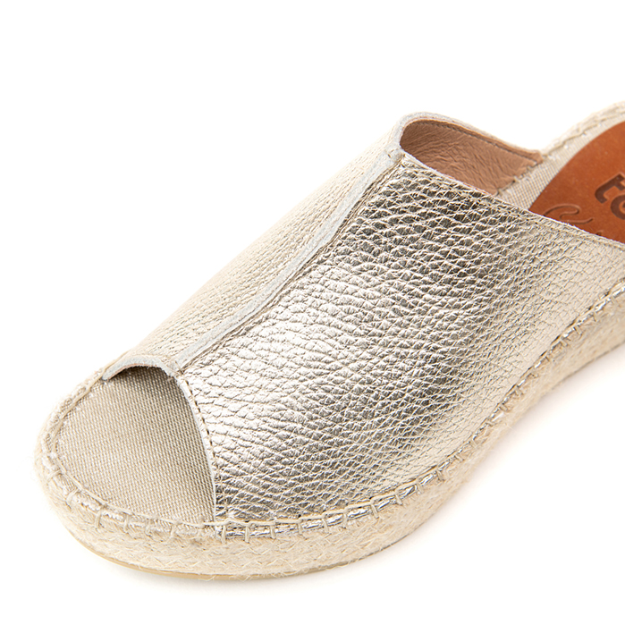 Zueco abierto en cuña con plataforma baja de yute natural y corte de piel serraje.