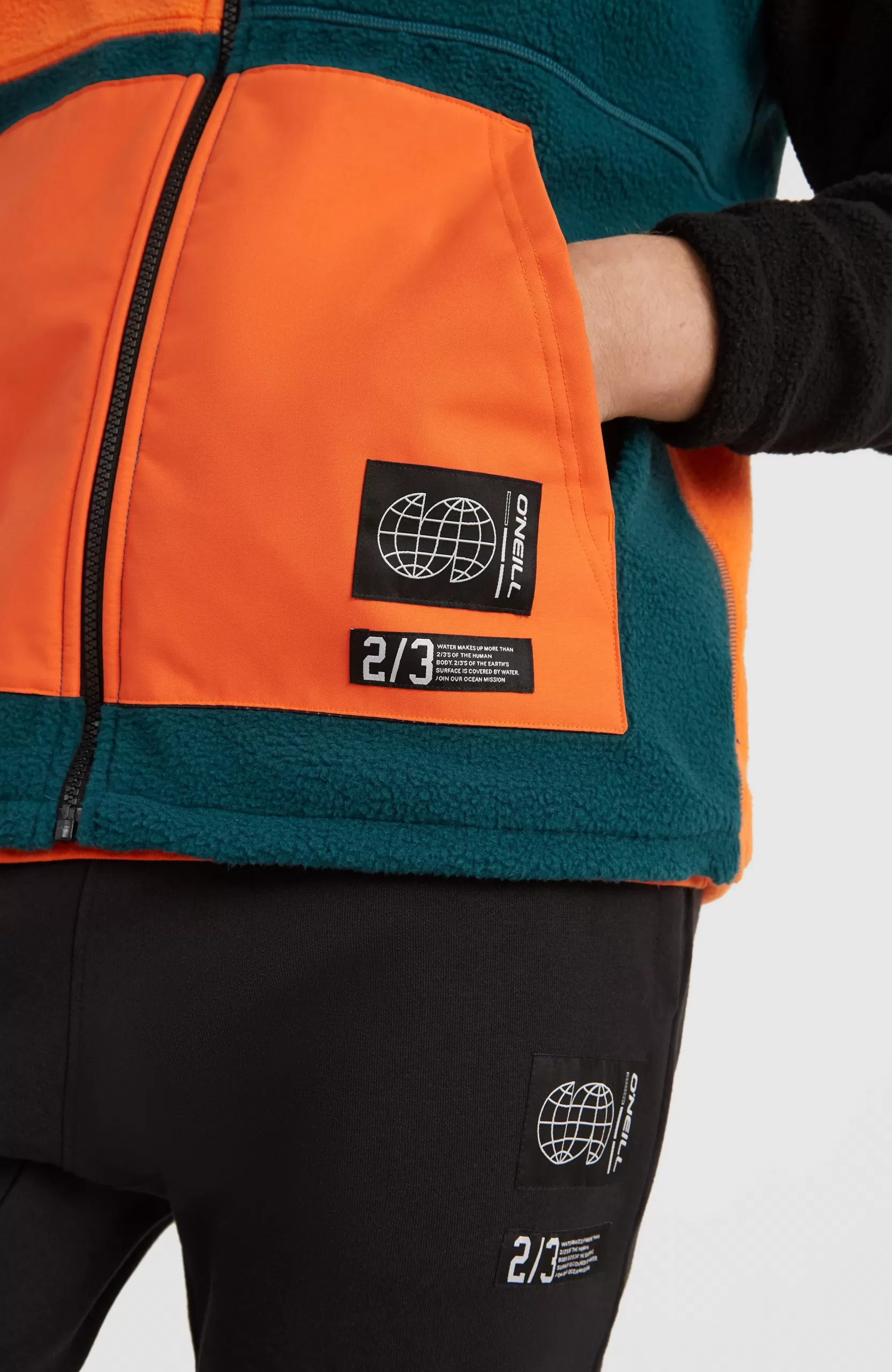 O’Neill Blue, confeccionado íntegramente con poliéster reciclado, el Progressive Colourblock Fleece tiene una cremallera completa y un cuello alto, bolsillos con cremallera en las manos y en el pecho y estilo para elevar tu look mientras te enfrentas a los elementos. El uso de poliéster reciclado requiere menos agua y energía en el proceso de producción en comparación con el uso de hilos vírgenes.