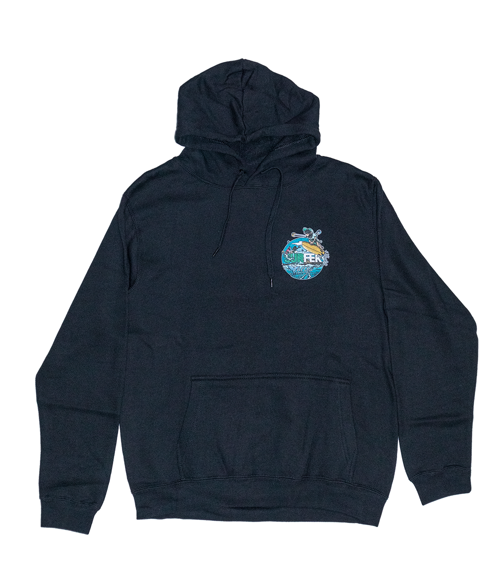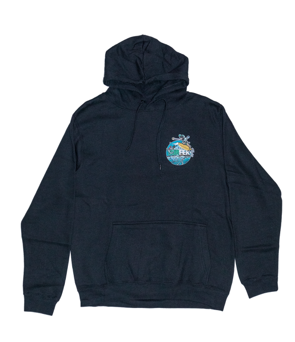 Sudadera Surfer Tarifa. Serigrafía en el pecho. 80 % Algodón Orgánico y 20 % Polyester Reciclado.